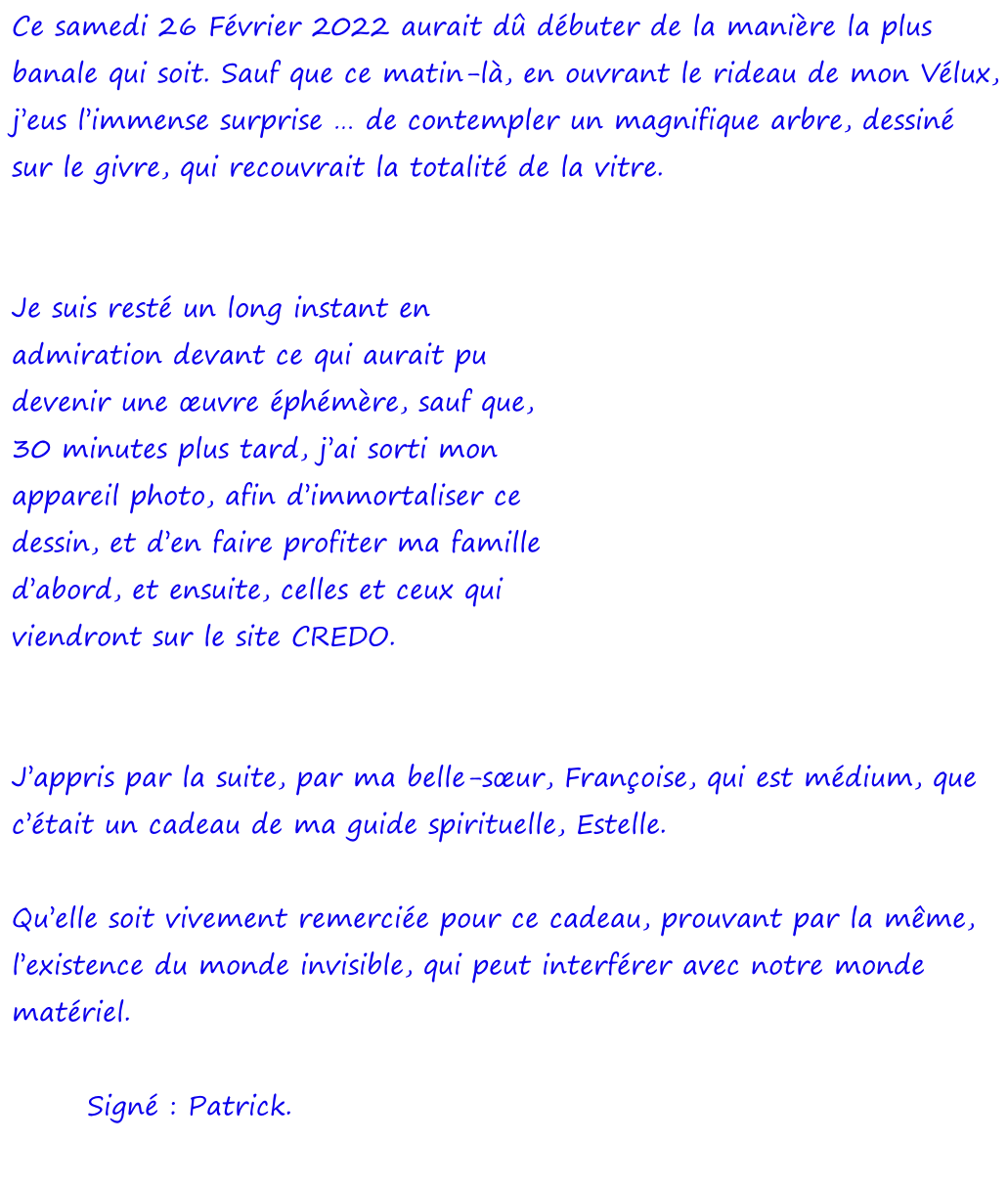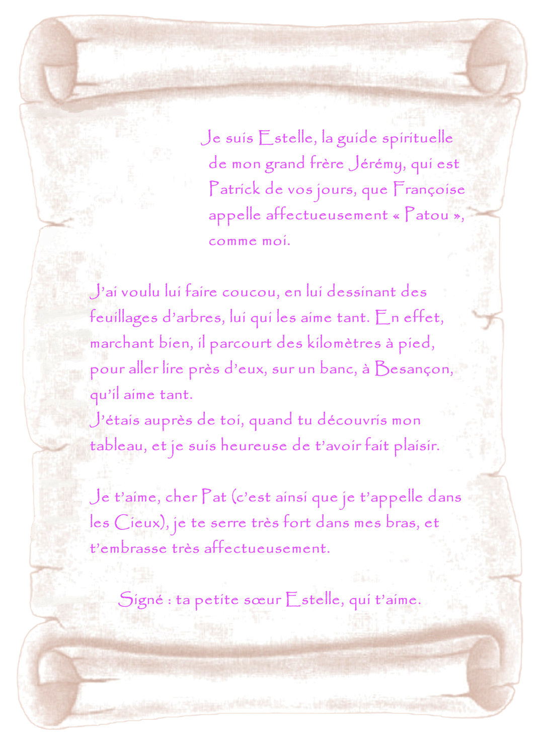 Le cadeau d’Estelle <<< Retour à la page « Patrick » Message canalisé  par Françoise-Rose, le  1er Mars 2022.